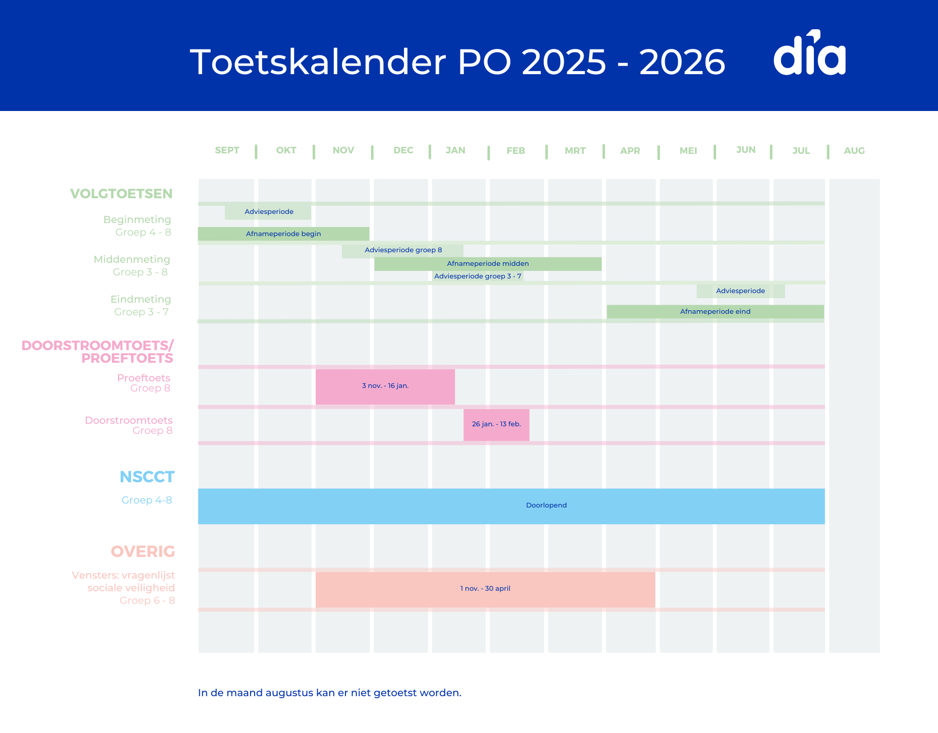 Ieder schooljaar heeft drie metingen: een begin-, midden- en eindmeting.