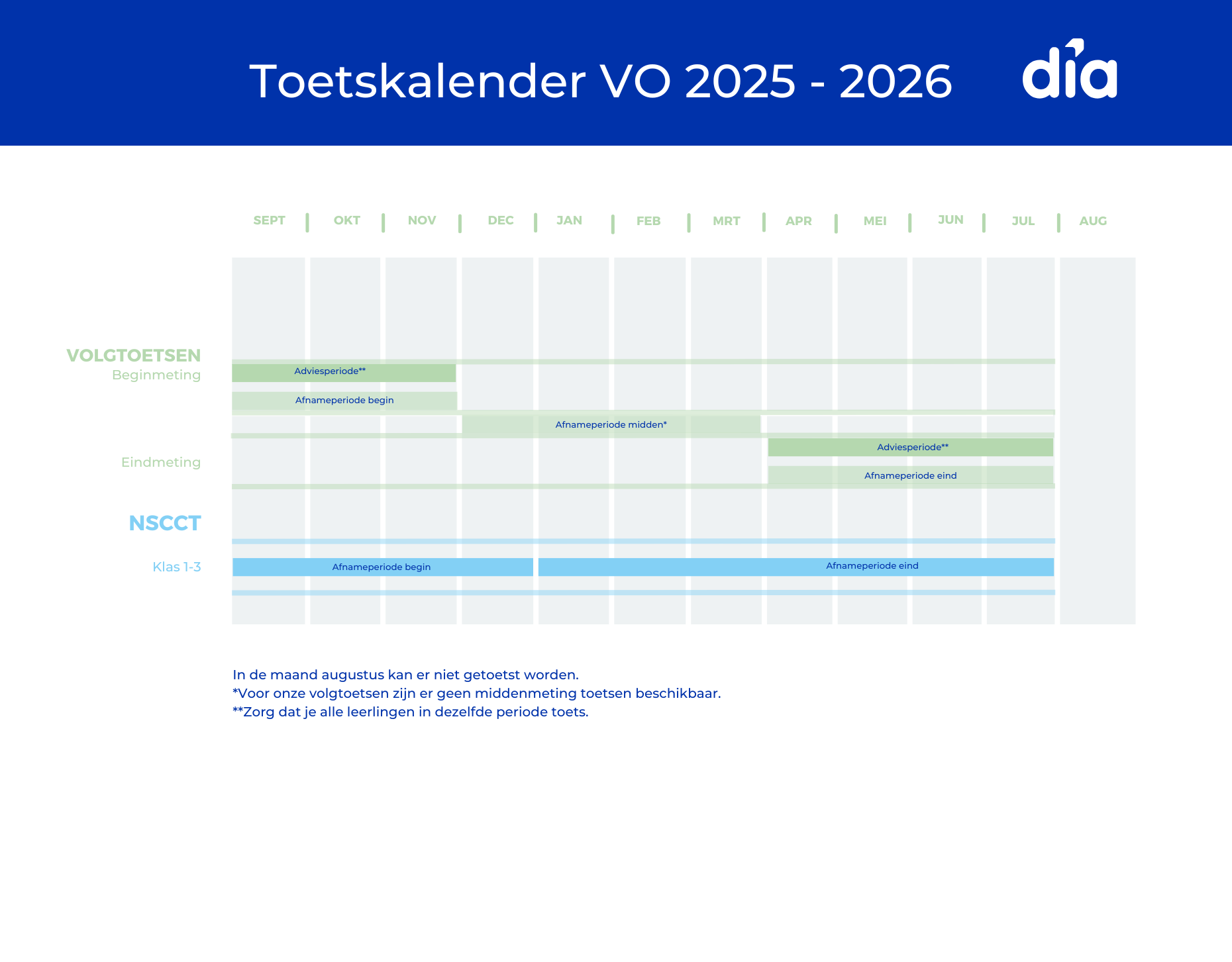Ieder schooljaar heeft 2 metingen: een nul- en een volgmeting.